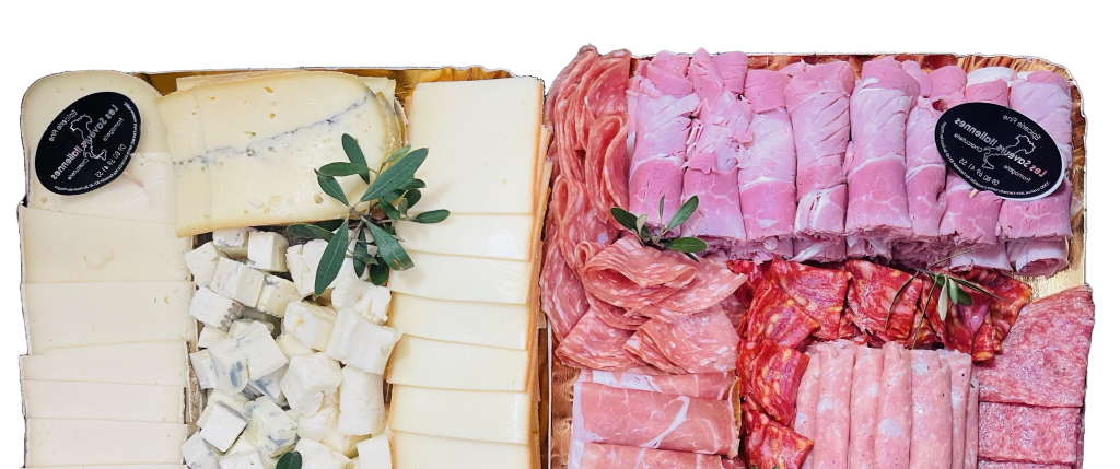 Jambon blanc, jambon cru, mortadelle, coppa, chorizo, cervelas ou camillo, saucisson ungherese, saucisse crespone
